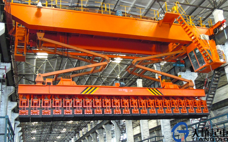 該機是大型預(yù)焙陽極電解鋁廠碳塊倉庫內(nèi)的關(guān)鍵設(shè)備,可夾運生、熟陽極塊,通過鏈式(或板式)運輸機將炭塊搬運到指定地點。